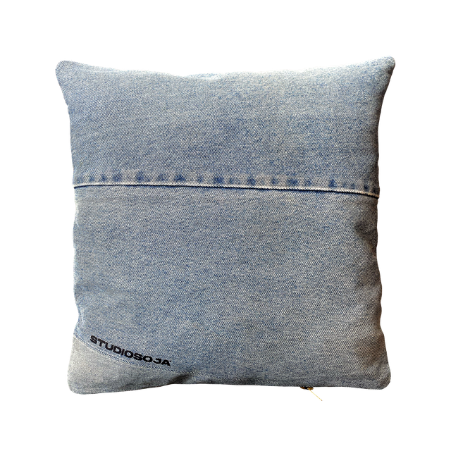 cut denim jean, stuffing cotton, DTF print & zip
